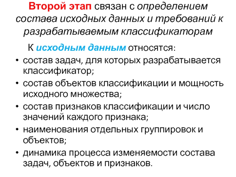Слайд 14Второй этап связан с определением состава исходных данных и требований