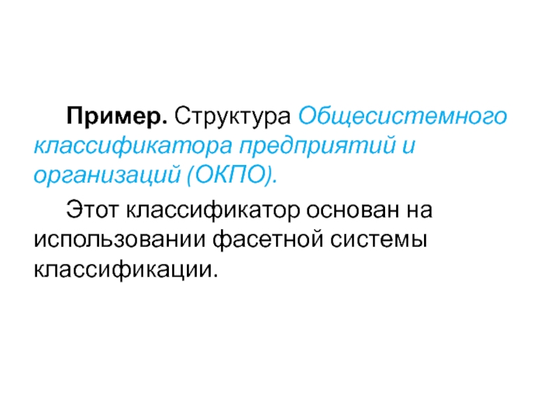Слайд 41Пример. Структура Общесистемного классификатора предприятий и организаций (ОКПО).