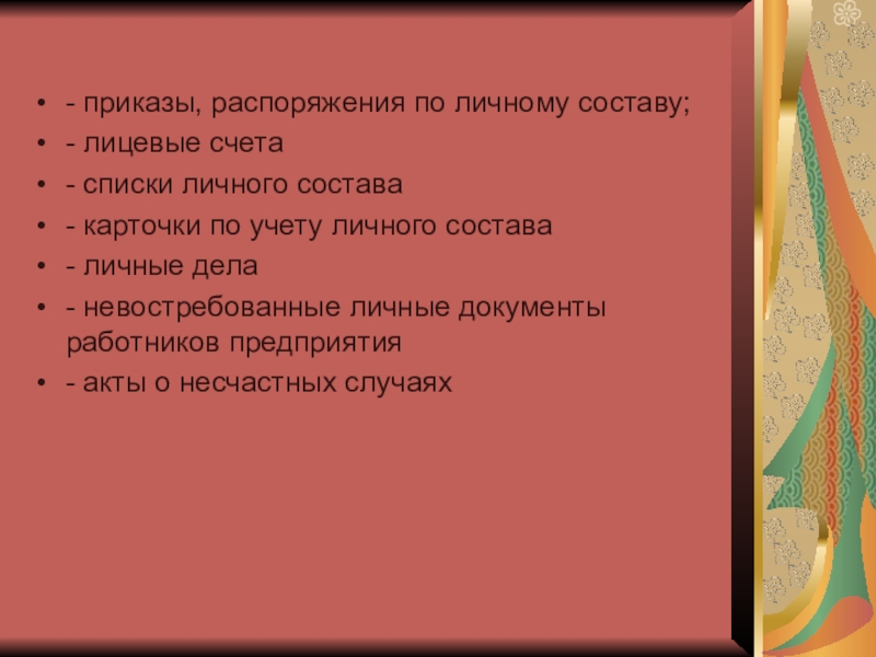 виды документов по личному составу, расположенных в следующей последовательности их номинальных признаков: