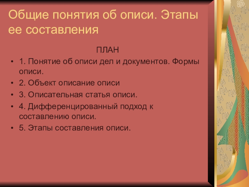 Слайд 2Общие понятия об описи. Этапы ее составления