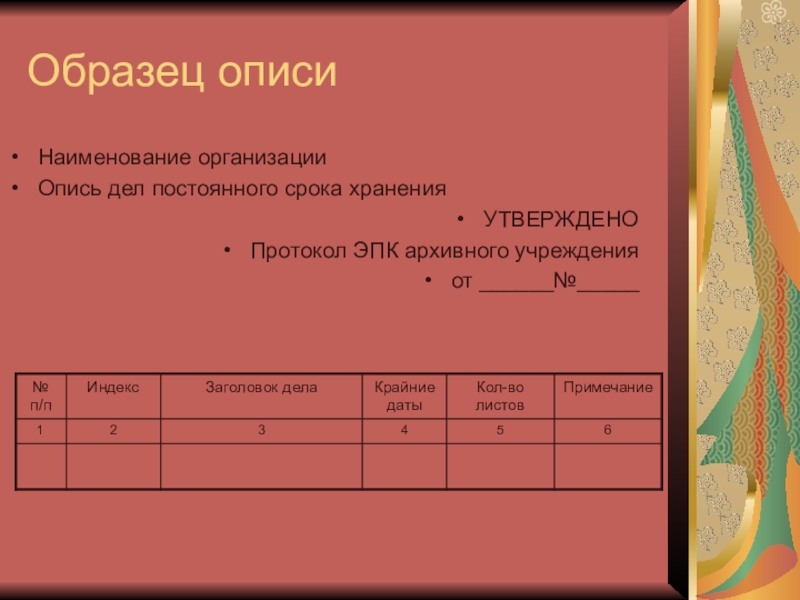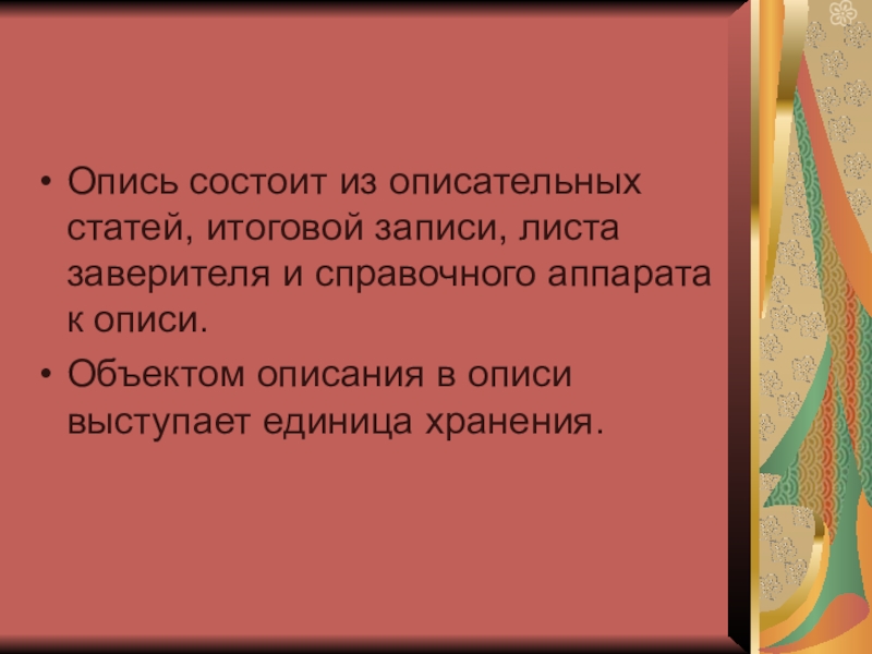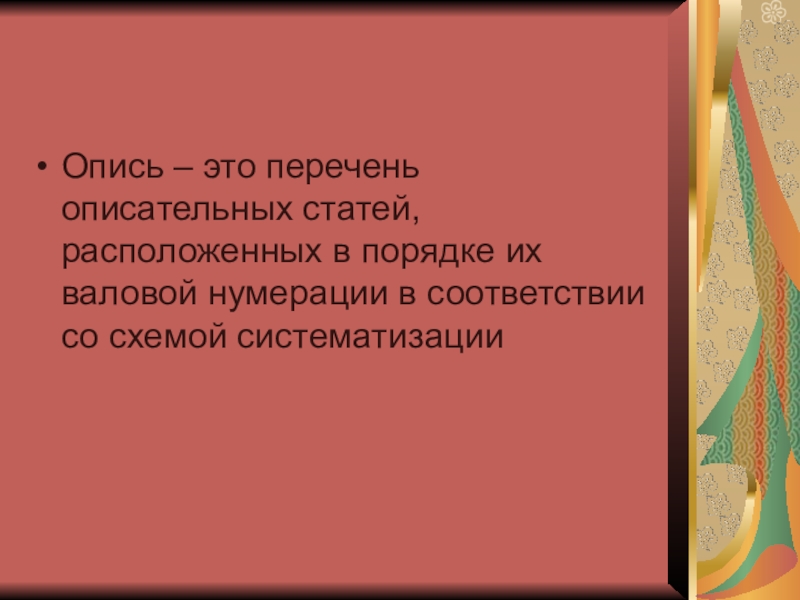 Слайд 5Опись – это перечень описательных статей, расположенных в порядке их