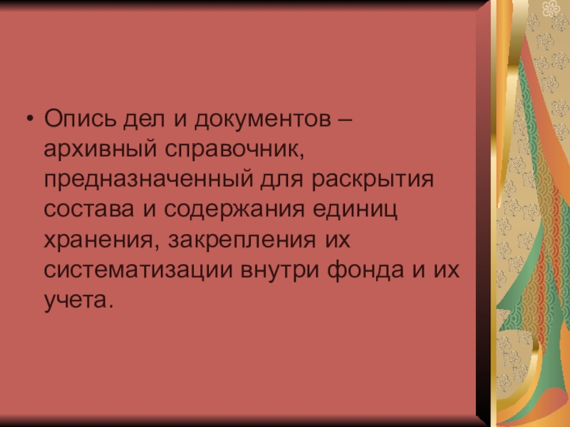 Слайд 3Опись дел и документов – архивный справочник, предназначенный для раскрытия