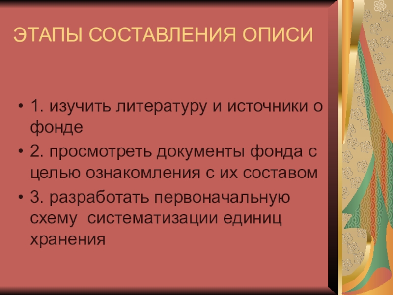 Слайд 12ЭТАПЫ СОСТАВЛЕНИЯ ОПИСИ