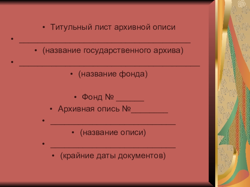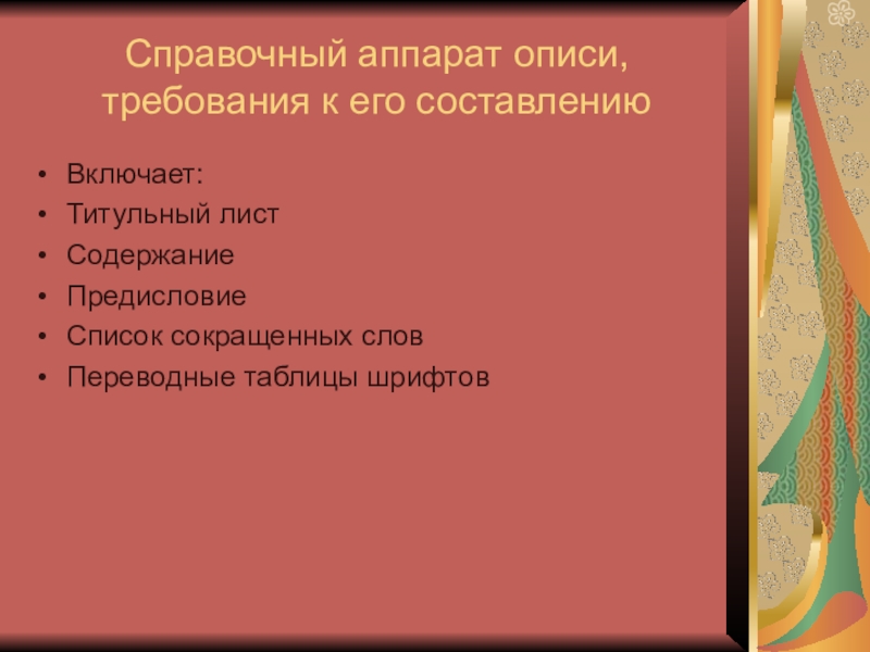 Слайд 26Справочный аппарат описи, требования к его составлению