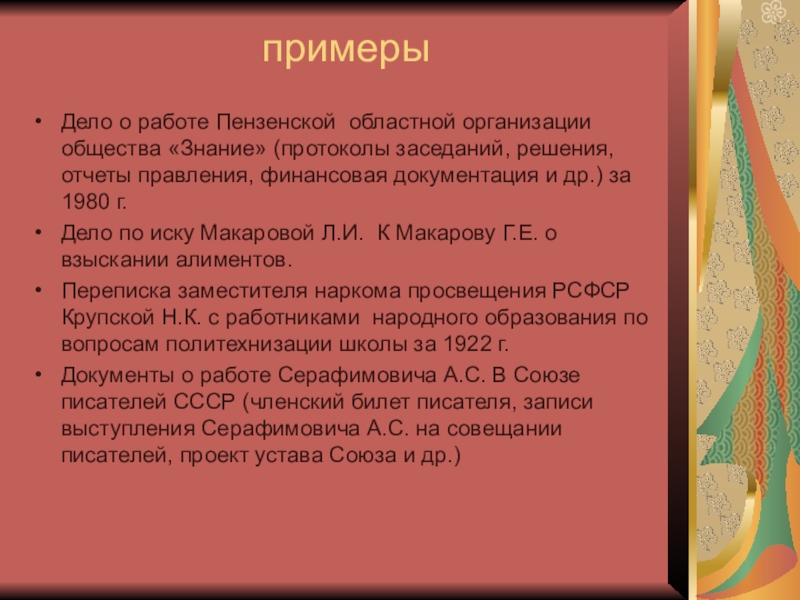 Особенности описания особо ценных документов, документов по личному составу, личного происхождения и др.