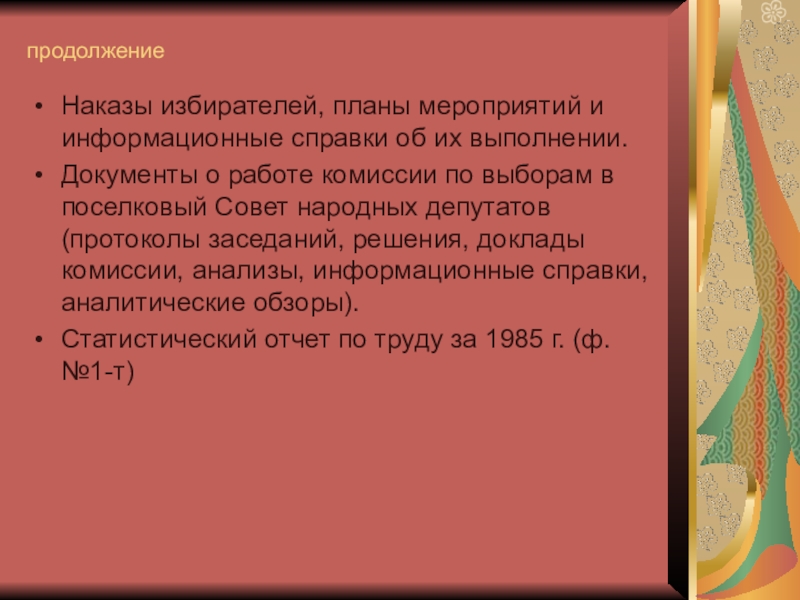 Наказы избирателей, планы мероприятий и информационные справки об их выполнении.