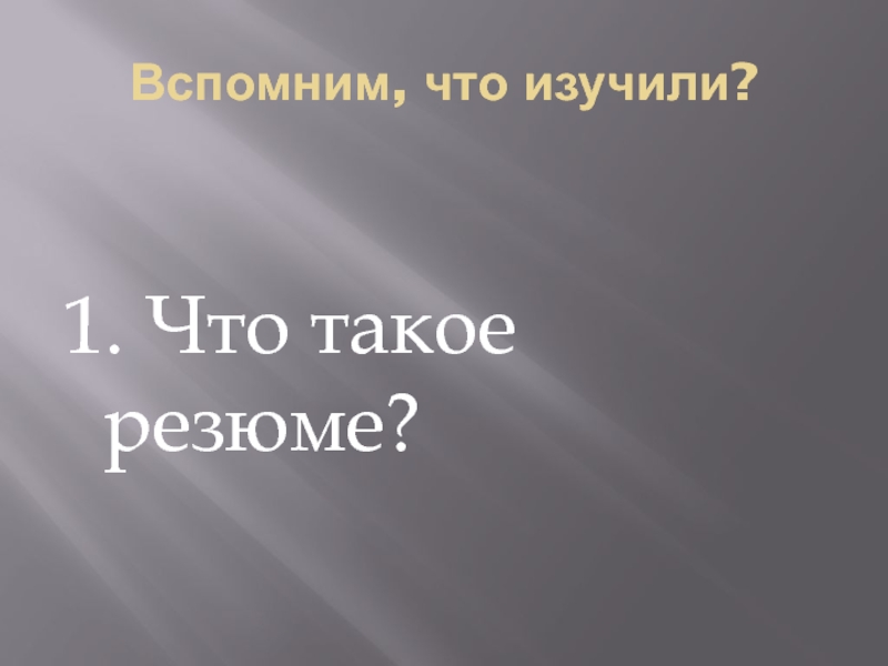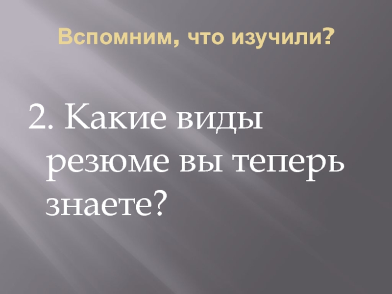 Вспомним, что изучили?2. Какие виды резюме вы теперь знаете?