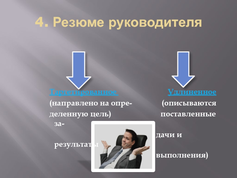 4. Резюме руководителяТаргетированное             Удлиненное(направлено на