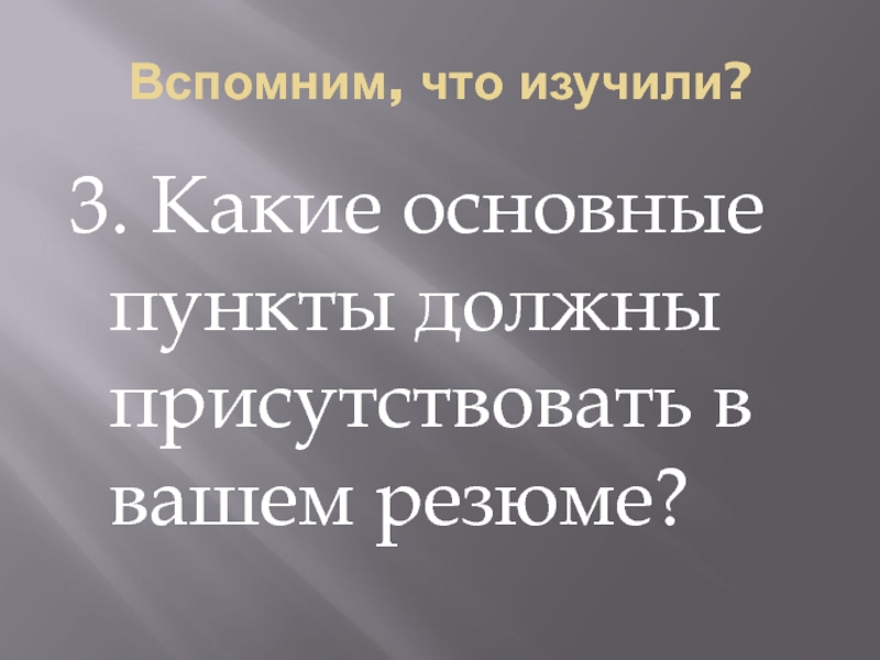 Вспомним, что изучили?3. Какие основные пункты должны присутствовать в вашем резюме?