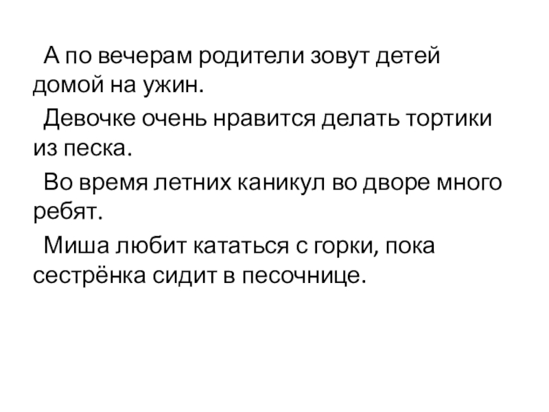 Слайд 5А по вечерам родители зовут детей домой на ужин.