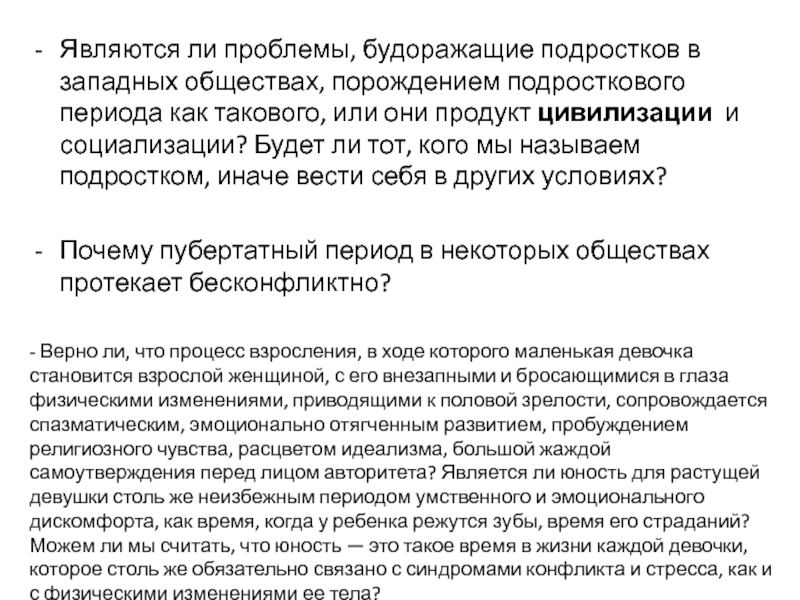 Слайд 7Являются ли проблемы, будоражащие подростков в западных обществах, порождением подросткового