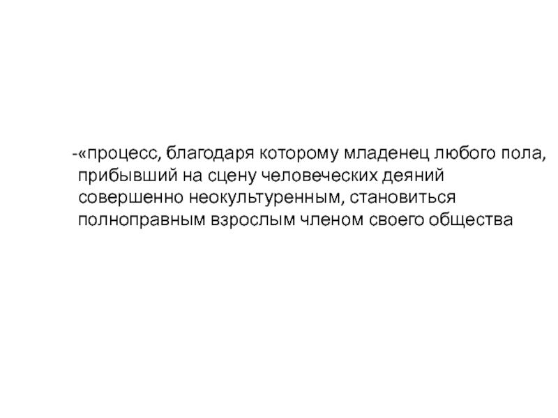 Слайд 8«процесс, благодаря которому младенец любого пола, прибывший на сцену человеческих