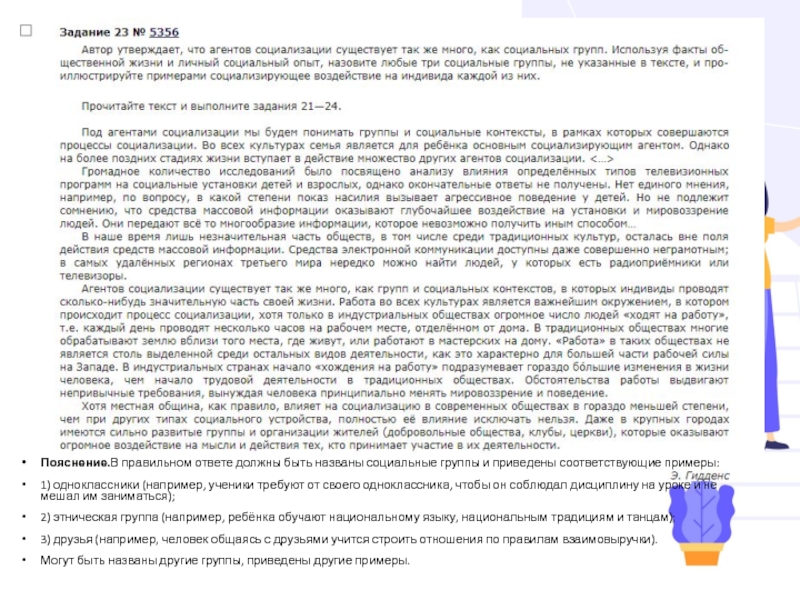Слайд 23Пояснение.В пра­виль­ном от­ве­те долж­ны быть на­зва­ны со­ци­аль­ные груп­пы и при­ве­де­ны