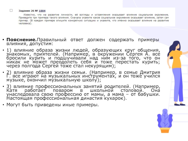 Слайд 22Пояснение.Правильный ответ должен содержать примеры влияния, допустим: