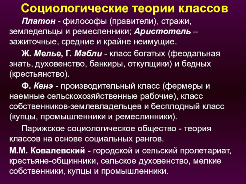 Парижское социологическое общество - теория классов на основе социальных рангов.