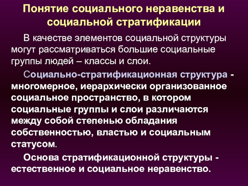Слайд 2Понятие социального неравенства и социальной стратификации