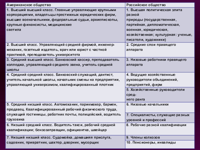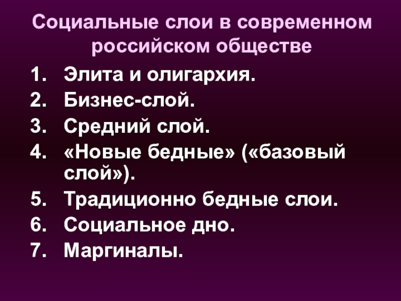 Социальные слои – промежуточные или переходные социальные группы, не обладающие признаками класса.