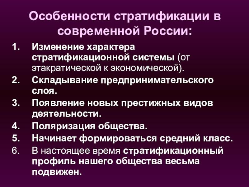 В настоящее время стратификационный профиль нашего общества весьма подвижен.