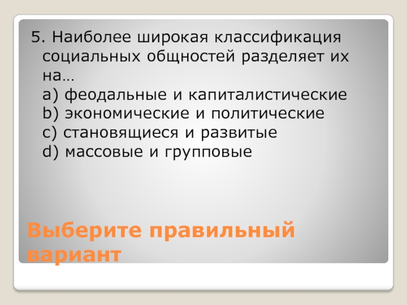 5. Наиболее широкая классификация социальных общностей разделяет их