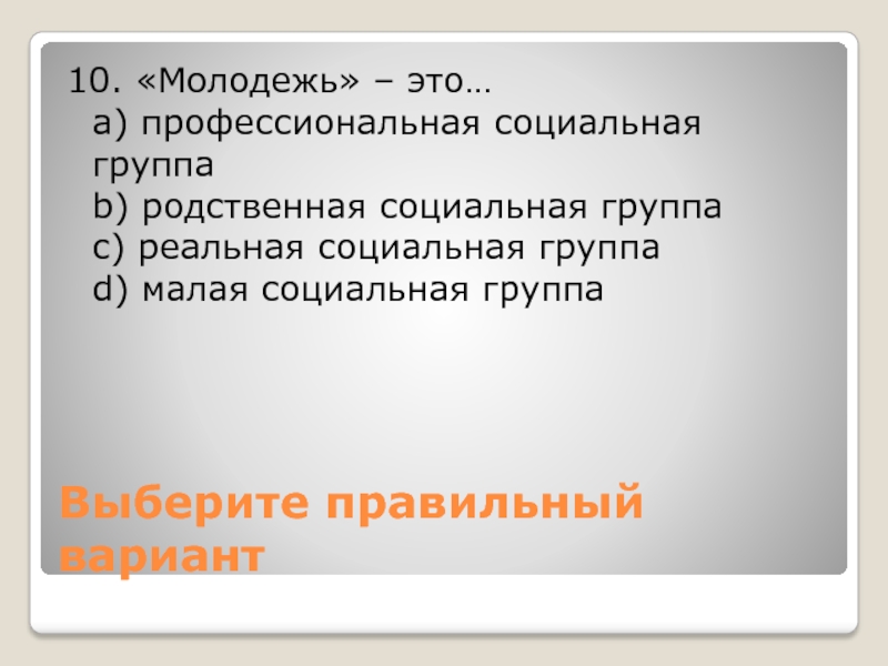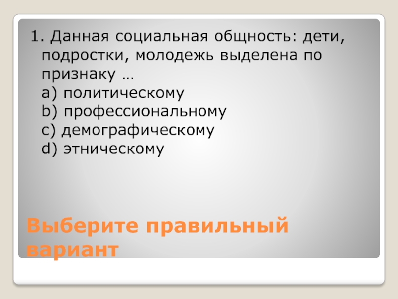 1. Данная социальная общность: дети, подростки, молодежь выделена