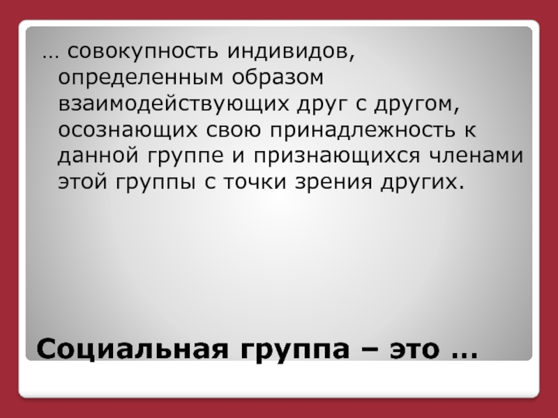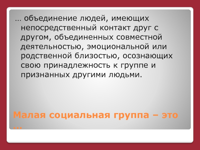 близостью, осознающих свою принадлежность к группе и признанных другими людьми.
