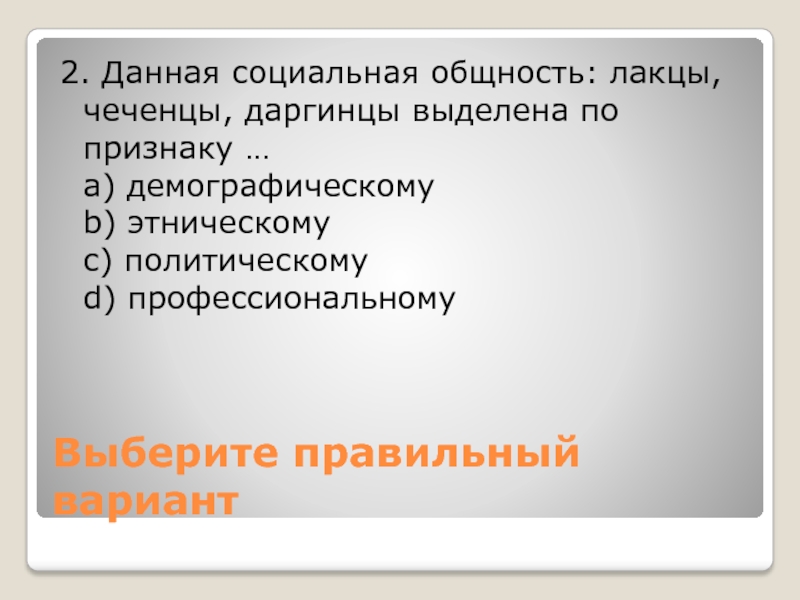 2. Данная социальная общность: лакцы, чеченцы, даргинцы выделена