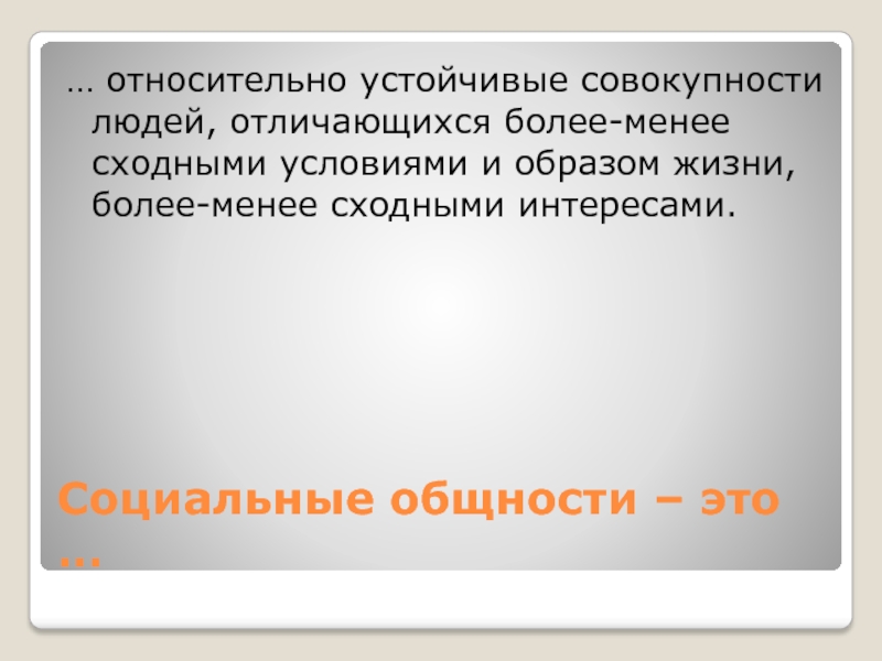 отличающихся более-менее сходными условиями и образом жизни, более-менее сходными интересами.