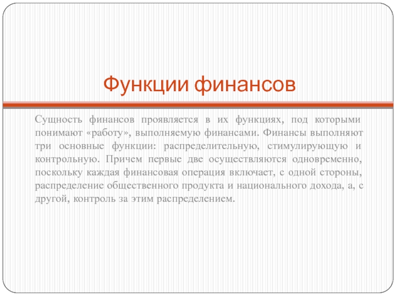 Сущность финансов проявляется в их функциях, под которыми понимают