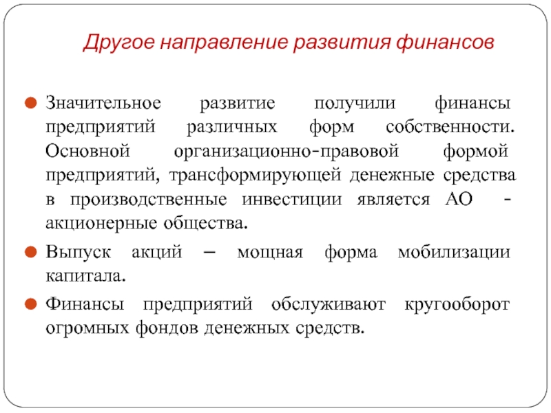Слайд 8Другое направление развития финансов