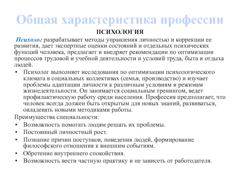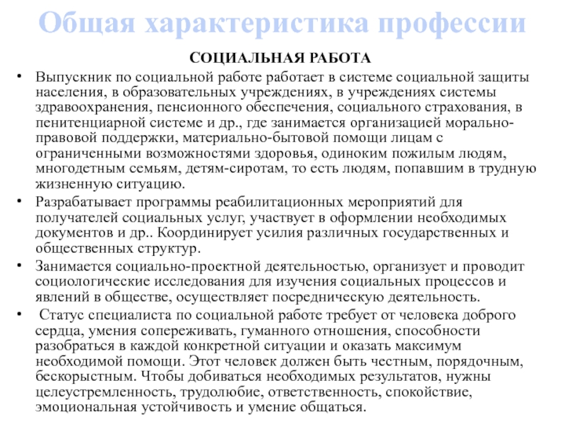 Слайд 9Общая характеристика профессии