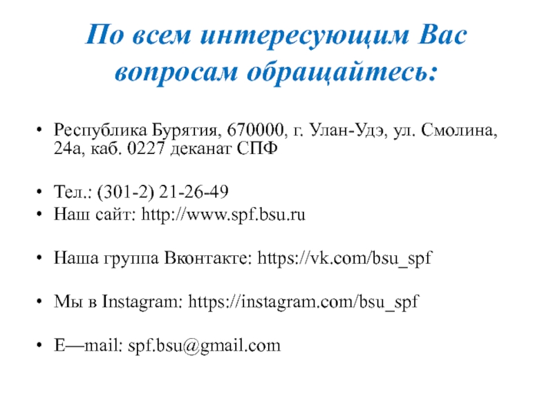 Слайд 13По всем интересующим Вас вопросам обращайтесь: