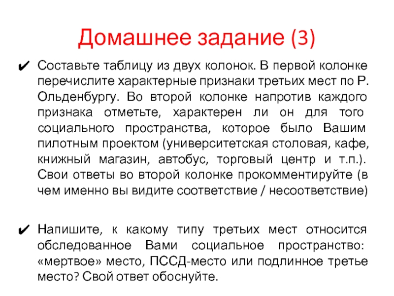 перечислите характерные признаки третьих мест по Р.Ольденбургу. Во второй колонке