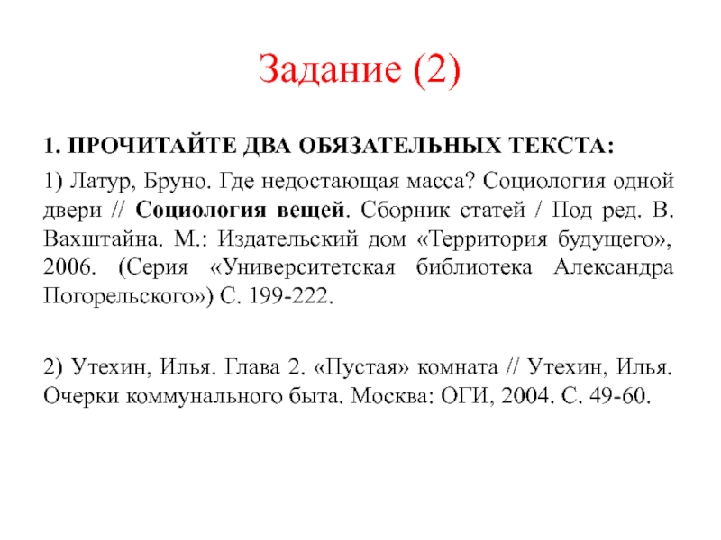 2) Утехин, Илья. Глава 2. «Пустая» комната // Утехин, Илья. Очерки коммунального быта. Москва: ОГИ, 2004. С. 49-60.