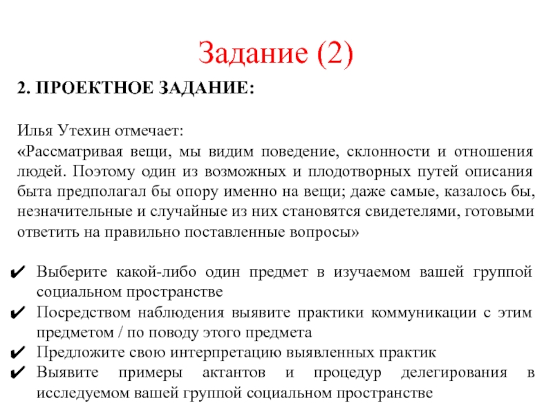 Выберите какой-либо один предмет в изучаемом вашей группой социальном пространстве