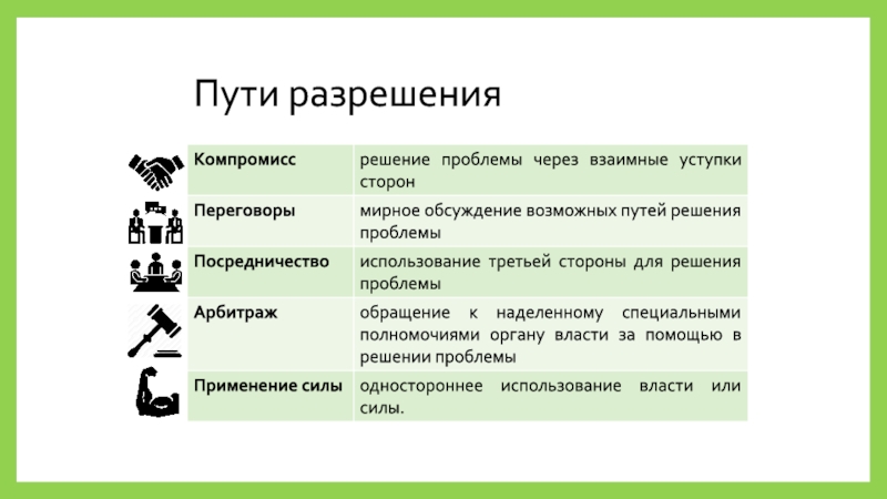 РАЗРЕШЕНИЕ КОНФЛИКТА: завершение инцидента, решение его участников о прекращении противоборства