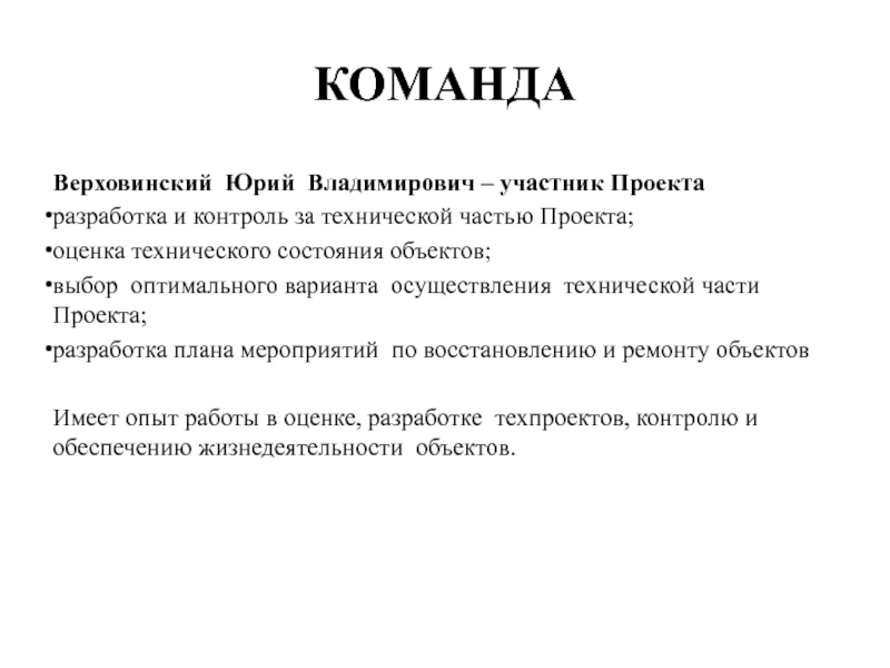 Верховинский Юрий Владимирович – участник Проекта