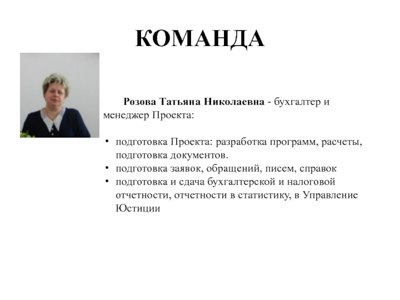 Розова Татьяна Николаевна - бухгалтер и менеджер Проекта: