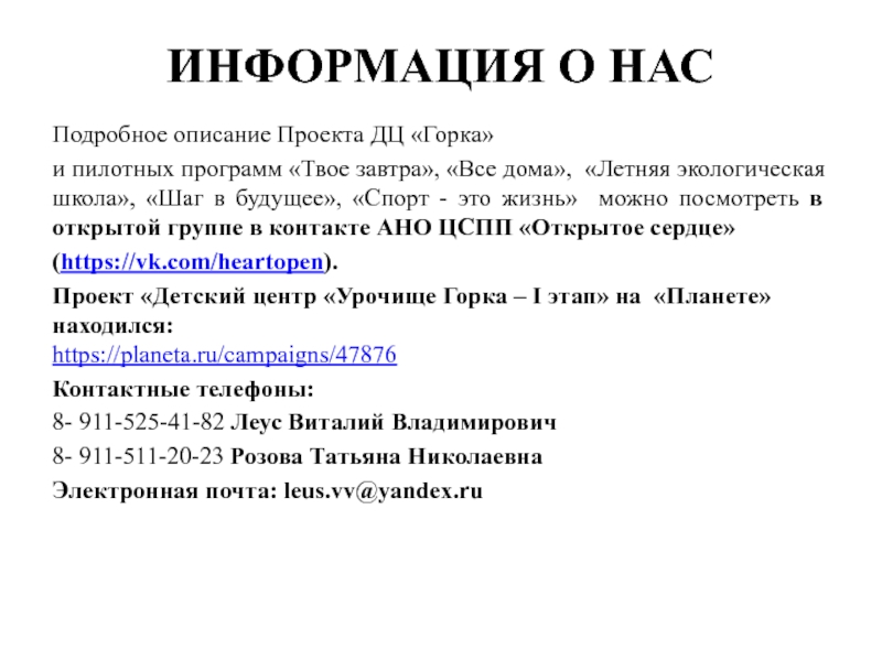 Слайд 29ИНФОРМАЦИЯ О НАС