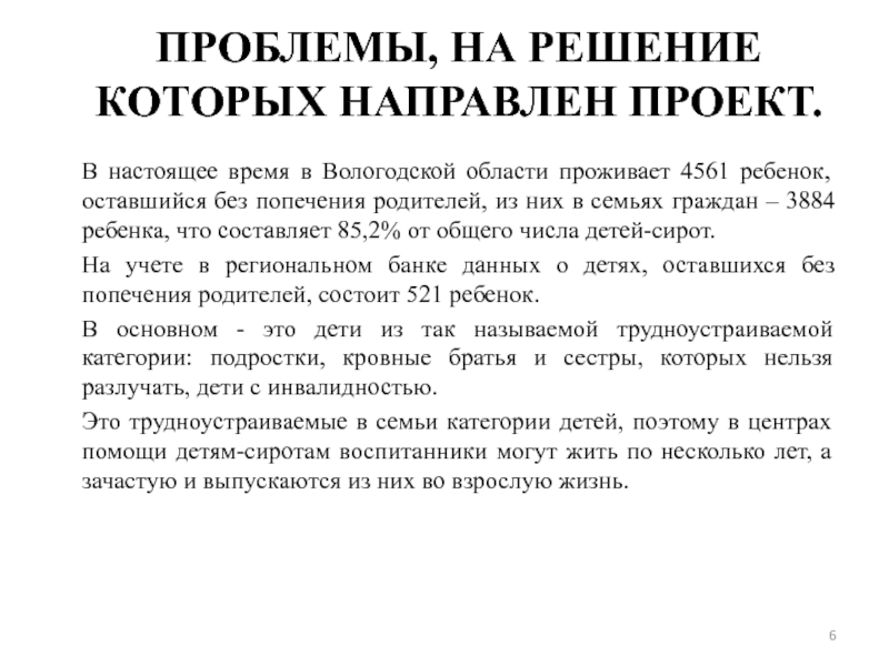 Слайд 6ПРОБЛЕМЫ, НА РЕШЕНИЕ КОТОРЫХ НАПРАВЛЕН ПРОЕКТ.