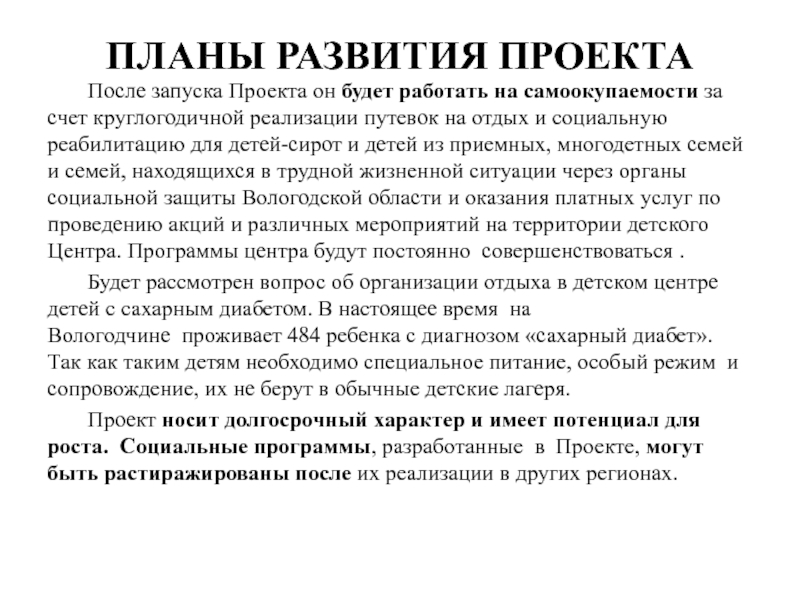Слайд 20ПЛАНЫ РАЗВИТИЯ ПРОЕКТА