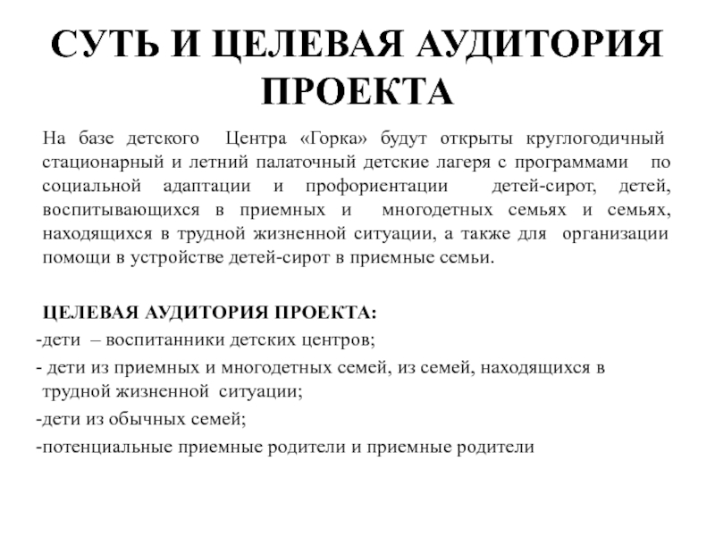 Слайд 2СУТЬ И ЦЕЛЕВАЯ АУДИТОРИЯ ПРОЕКТА