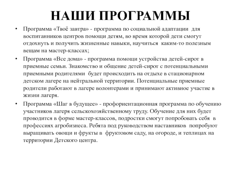 Слайд 16НАШИ ПРОГРАММЫ
