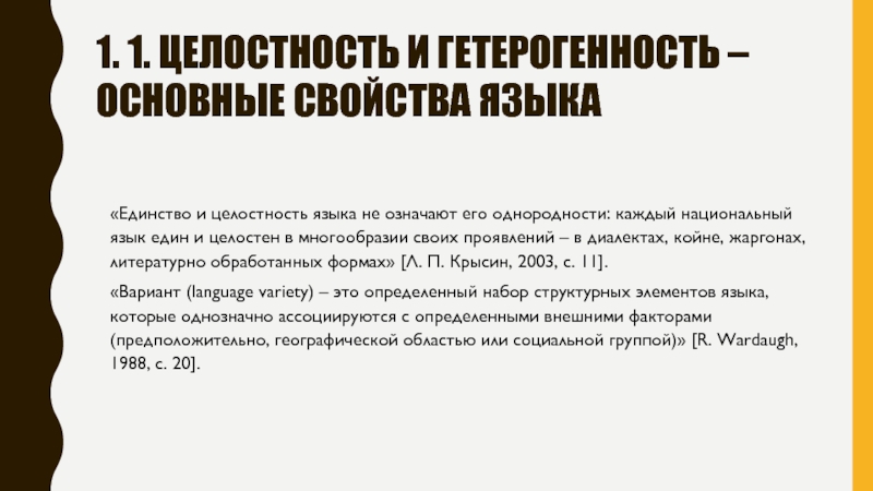 Слайд 31. 1. Целостность и гетерогенность – основные свойства языка