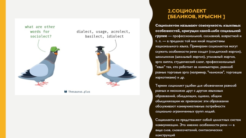 Слайд 62.Социолект [Беликов, Крысин ]
