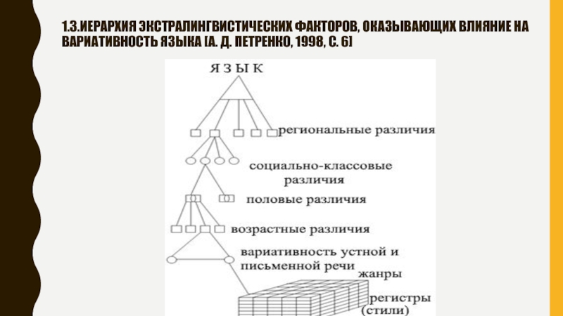 Слайд 51.3.Иерархия экстралингвистических факторов, оказывающих влияние на вариативность языка [А. Д.