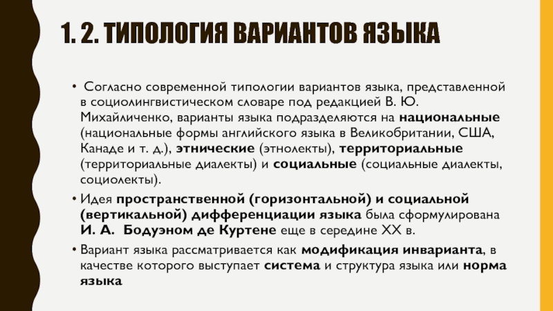 Слайд 41. 2. типология вариантов языка