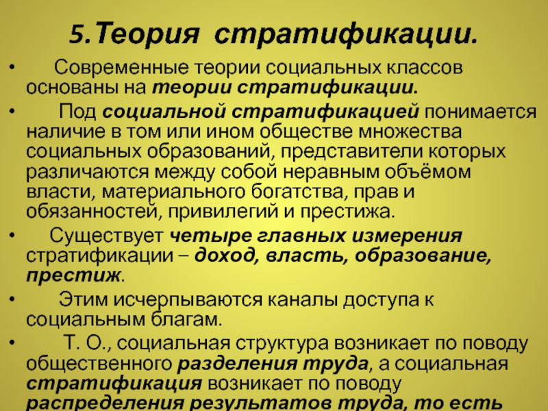 Т. О., социальная структура возникает по поводу общественного разделения труда, а социальная стратификация возникает по поводу распределения результатов труда, то есть социальных благ.
