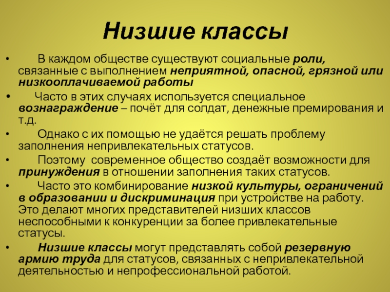 Низший-низший класс (в него входят нищие, безработные, бездомные иностранные рабочие и др.).