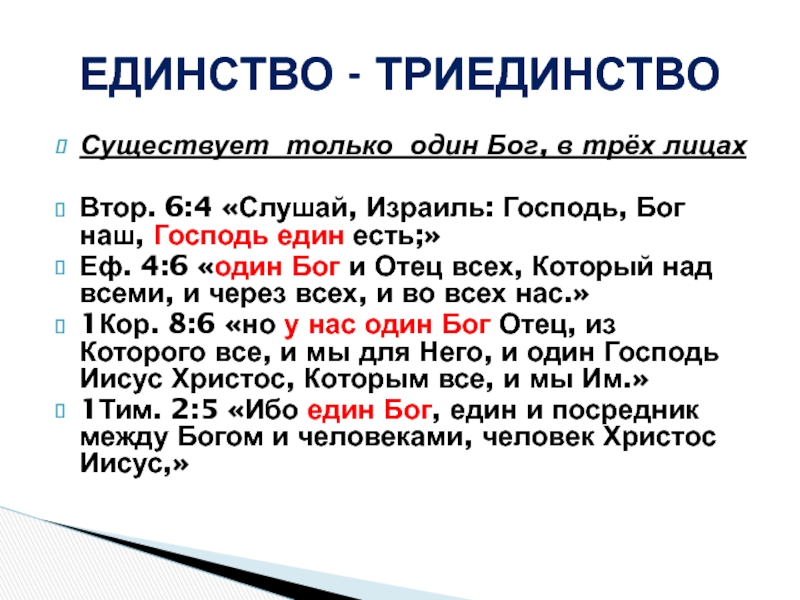 Существует только один Бог, в трёх лицах