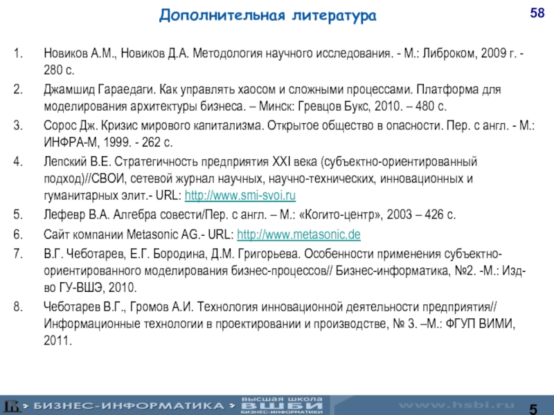 В.Г. Чеботарев, Е.Г. Бородина, Д.М. Григорьева. Особенности применения субъектно-ориентированного моделирования бизнес-процессов// Бизнес-информатика, №2. -М.: Изд-во ГУ-ВШЭ, 2010.